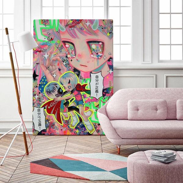 Japanskan Hikari Shimoda är inspirerad av serier och manga med spektakulära färger och färgsprakande motiv. Shimoda använder ofta barn som motiv och bilderna är enormt inspirerade av japansk popkultur. Tavlorna är söta och förtrollande samtidigt som de förmedlar en känska av lite, lite skräck.