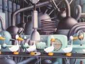 Michaels bilder går under kategorin pop art och några av de mest kända är bilderna med Sitting Ducks.